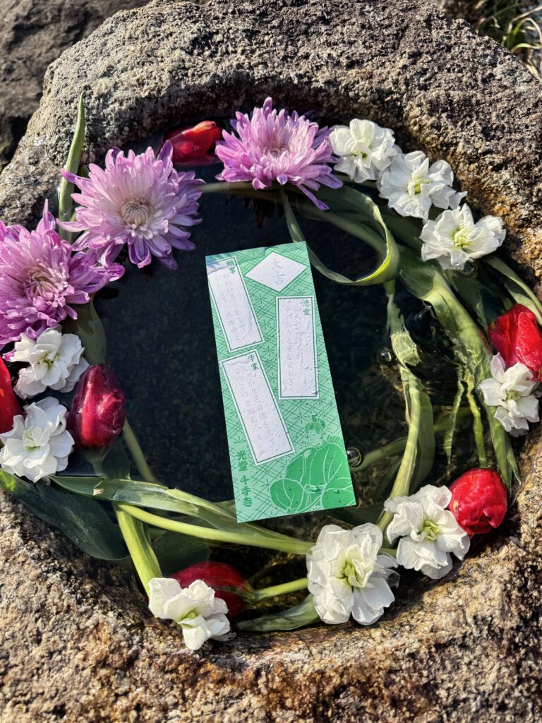 オリジナル水みくじを制作。文字が浮き上がるまでしばらくの間業平に思いを馳せて